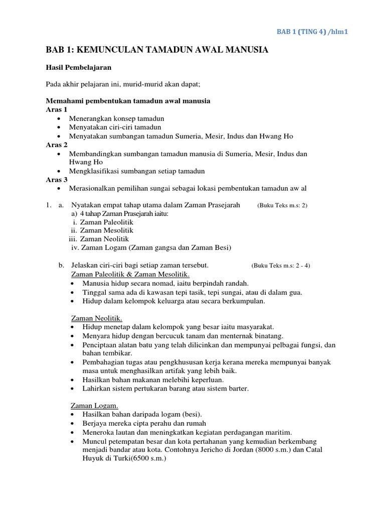 Bab 1 Kemunculan Tamadun Awal Manusia Pdf